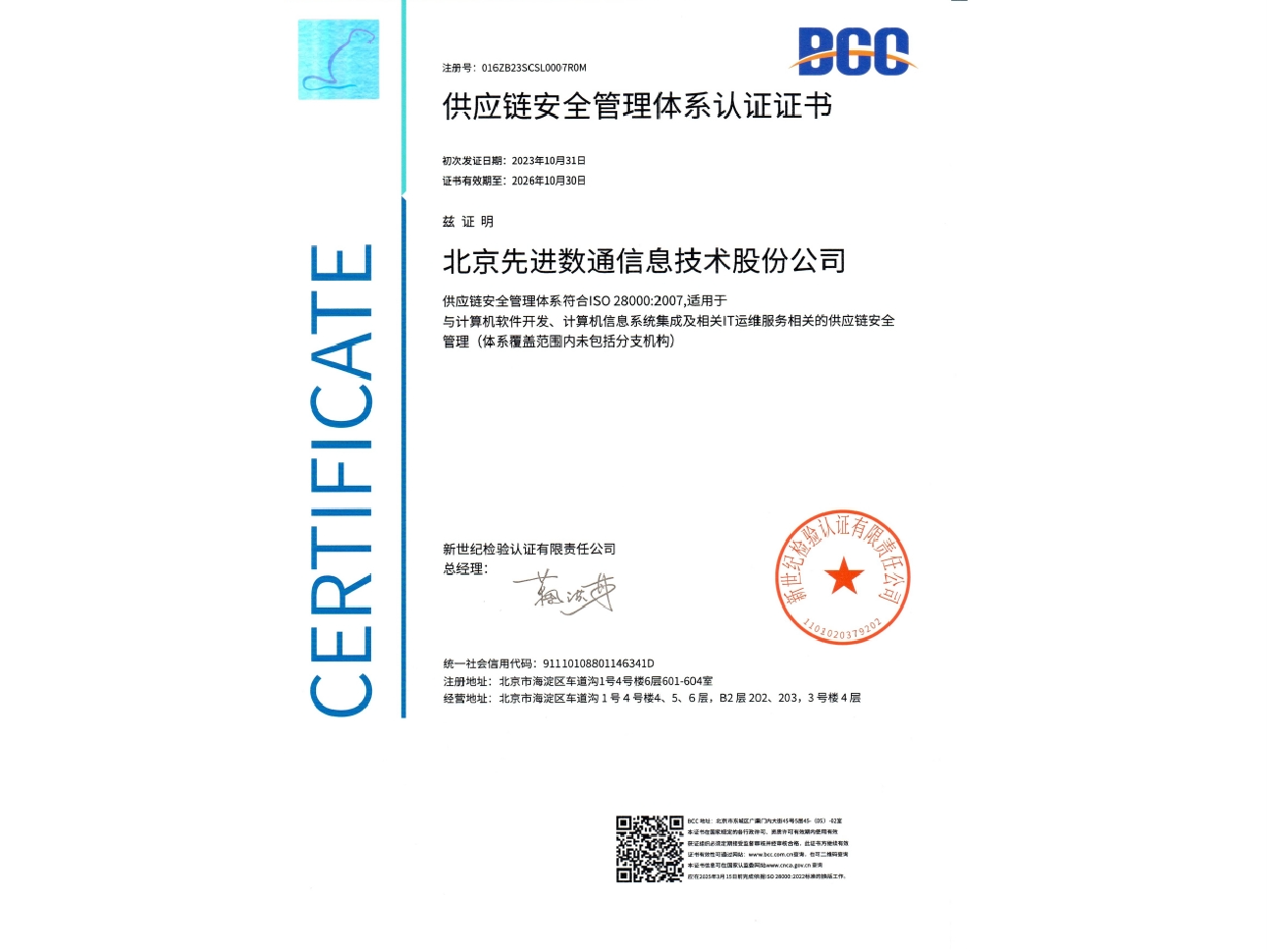 • 供应链清静管理系统认证证书