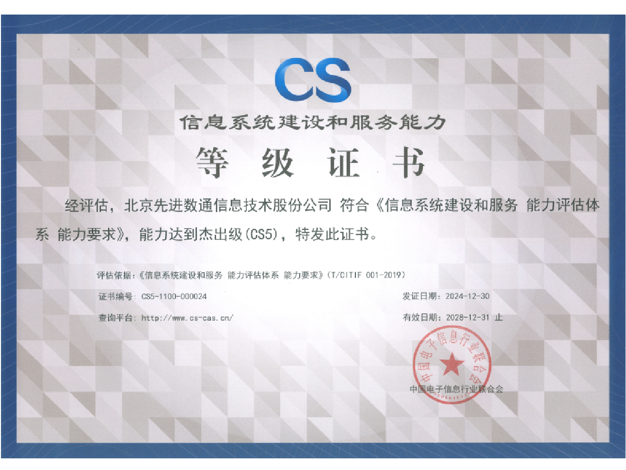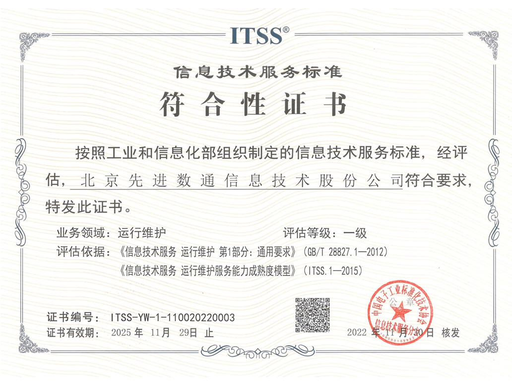 先进九州ku游官网先后获得CMMIL5、软件能力成熟度五级(SPCA 5)、信息系统建设和服务能力评估系统(CS)5级、ITSS成熟度一级、信息系统清静集成服务资质二级、信息系统清静运维服务资质二级、国产化信息系统集成和服务能力评估四级(LS4)、北京市企业手艺中心等资质认证,,,,,,,,并获得ISO9001、ISO20000、ISO27001、ISO14001、ISO45001、ISO22301、ISO37001、ISO28001、GBT29490、SA8000等标准系统认证,,,,,,,,具备行业领先的手艺开发、工程实验及服务包管能力。。。。。。