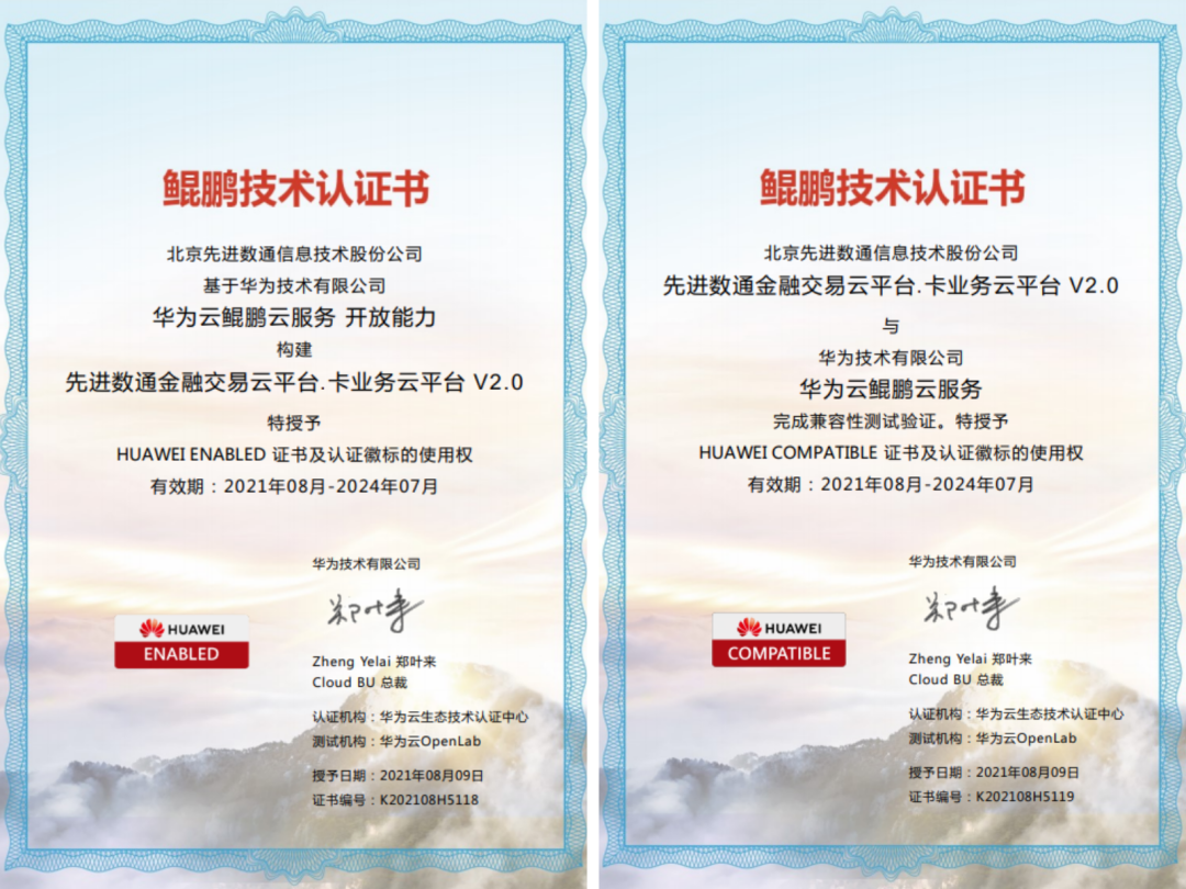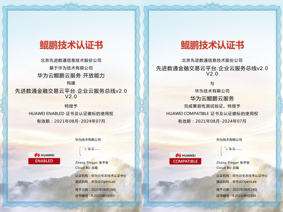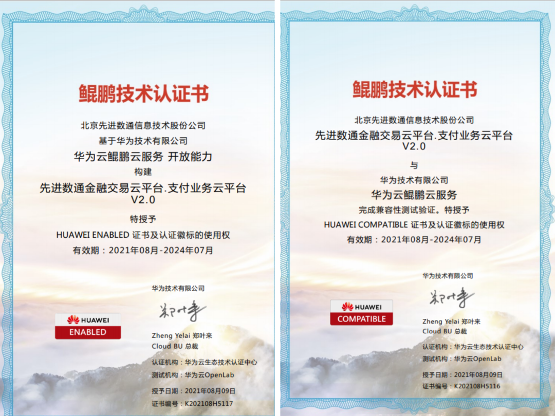 金融生意云平台获华为云鲲鹏云手艺认证