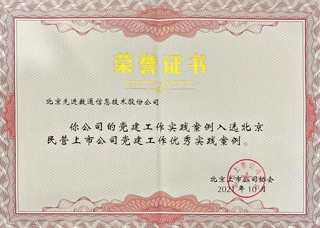 克日,,,,,,,,北京上市公司协会授予九州ku游官网声誉证书,,,,,,,,先进九州ku游官网党建事情实践入选北京民营上市公司党建事情优异实践案例,,,,,,,,相关党建运动已收录在《北京民营上市公司党建事情优异实践案例汇编》。。。。。。